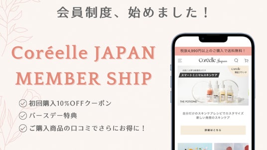 株式会社メディア工房(本社:東京都港区、代表取締役社長:長沢一男、東証グロース上場:証券コード3815)は、2024年9月25日(水)より、韓国発の人気コスメセレクトショップ Coreelleと協業運営するCoreelle Japan(コリエルジャパン)が、この度新たな会員制度を導入したことをお知らせいたします。