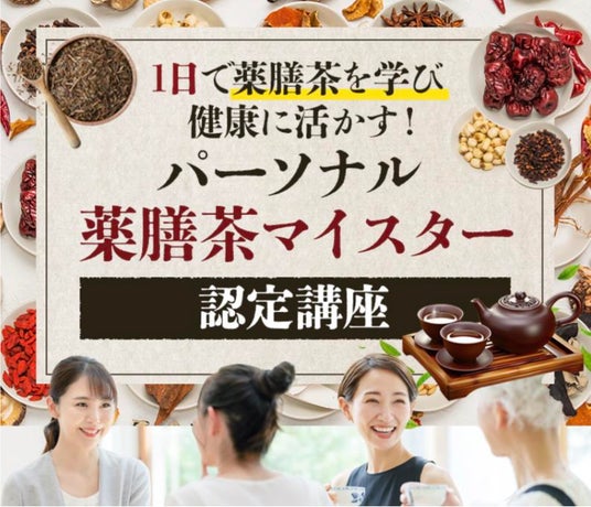この度、資格発行元の一般社団法人日本薬膳研究会は株式会社薬膳の極みに運営を委託し、9 月 29 日にパーソナル薬膳茶マイスター認定講座を 9 月 29 日に開講いたします。