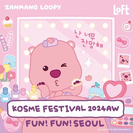 春に続き2回目の韓国コスメコスメだけをクローズアップした本企画は、パールがきらめくクリアで鮮やかな色合いのリップやチーク、乾燥が気になる季節にもっちりとした弾力のある肌へサポートするスキンケア、まるで香水のように香り高いボディーウォッシュやヘアオイルなどがラインナップ。今回は韓国で大人気のキャラクター「ZANMANG LOOPY(じゃんまんるぴー)」の描き下ろしイラストがキービジュアルに。また、ロフト大型店10店舗には、「AMOREPACIFICFESTIVAL」コーナーも登場します。