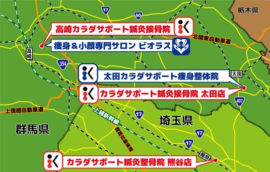 群馬県・埼玉県で整骨院など、4事業部52店舗を展開する株式会社プリマベーラ(群馬県太田市/代表 新井英雄)は、10月4日(金)に「痩身&小顔専門サロン ビオラス」(高崎市)をオープンし、先着100名様限定の初回特別コースを提供いたします。7月にオープンした「高崎カラダサポート鍼灸接骨院」と併設で営業し、痩身・小顔などの美容だけでなく、産後の骨盤矯正など治療やトレーニングまでワンストップで対応可能な店舗となります。 ※痩身・小顔=顔・体の引き締め施術