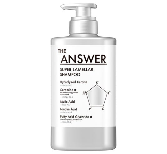 そこで花王は、100年のヘアケア研究からたどり着いた、ヘアケアの答え*⁴ として、新ヘアケアブランド「THE ANSWER」を提案します。「THE ANSWER」は、【世界初*¹】花王が考える美髪5大必須成分*²(補修)配合のシャンプー・トリートメントです。髪質問わず、うるおい、まとまり、ツヤめき、なめらかで、しなやかな髪へと導きます。