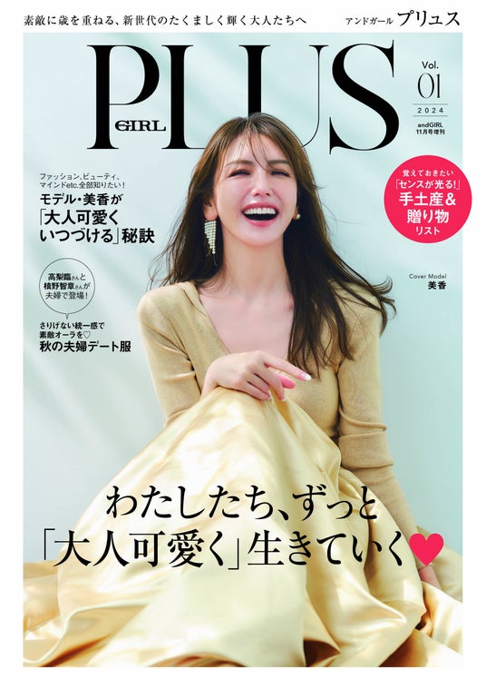 株式会社DONUTS(東京都渋谷区、代表取締役:西村啓成)は、女性向けファッション誌『andGIRL PLUS(アンドガール プリュス)』を2024年10月7日(月)に発売いたします。記念すべきVol.1の表紙はWカバー。【表紙】は、「大人可愛い」を牽引し続けているモデル・美香さんが、【裏表紙】は2人で女性ファッション誌のカバーを飾るのは初となる高梨臨さん、槙野智章さん夫婦が務めます。