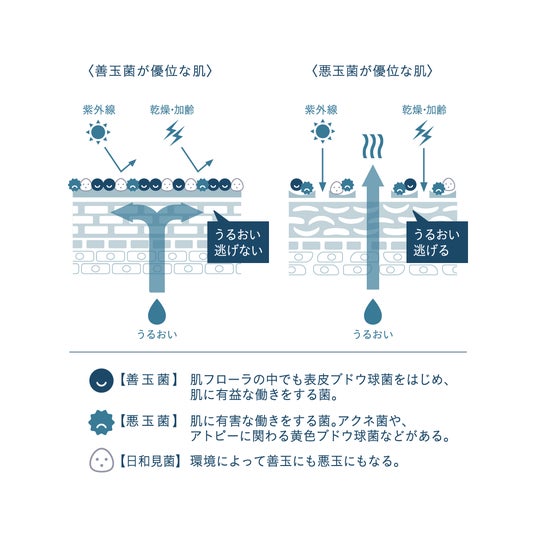 TEUDUでは、善玉菌が優位な肌状態にし、菌そうのバランスを整えることで美しい肌へと導くことをコンセプトにしています。