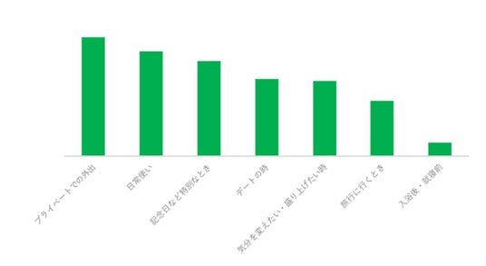 フレグランス、時計、ファッション雑貨等のブランドを取り扱う専門商社である株式会社ウエニ貿易(本社:東京都台東区、代表取締役社長:宮上光喜)は、季節の香り「シャルドネ」のイメージ調査を実施。『大人っぽい』と半数近くの方が回答し、その他『上品』などのイメージを持っている方が多いという結果になりました。「シャルドネの香り」を試してみたい・どちらかといえば試してみたいと回答された方が、74%(※1)。ゆずやきんもくせいのような定着した香りではない分想像がしにくいものの、今後も注目度が高い香りとなっています。シャルドネの香水をどんな時に使用したいかの質問に関しては、「プライベートでの外出」が一番多い回答となり、次いで「日常使い」となっています。プライベートや日常生活の中で、いつもと違った香りを試したいという方が多いという結果になりました。