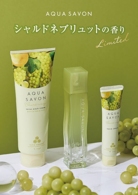 せっけんの香りをテーマにしたコスメティックブランド「アクア シャボン(https://aquasavon.jp/)」から“シャルドネブリュットの香り“の『オードトワレ』『ハンドクリーム』『トータルマルチクリーム』が2024年9月から好評発売中です。