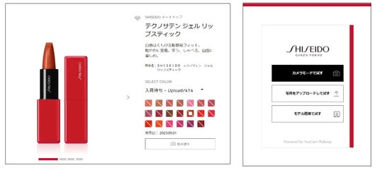 SHISEIDO テクノサテン ジェル リップスティック公式サイトでは、お手持ちのスマートフォンのカメラを起動して自身の顔でメイクした姿をシミュレーションできます。