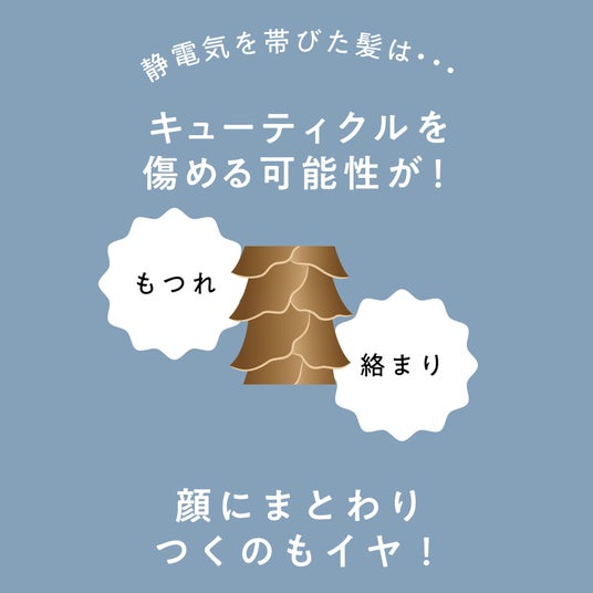静電気を帯びた髪はもつれ・からみが発生しやすくなり、摩擦によってキューティクルが痛む可能性に繋がります。本商品は、表面にクロムメッキ加工を施すことで通電効果で髪の毛の静電気を流して逃します。