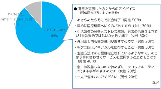 – アドバイスの回答率が約9割と、薄毛に悩む同志への熱い友情(?)も感じられた