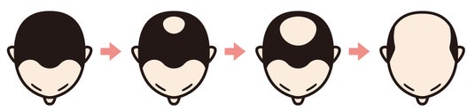 (参考)日本人に最も多いとされる、頭頂部からの薄毛イメージ ※ハミルトン・ノーウッド分類より抜粋