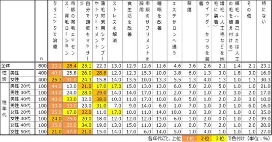 – 市販の育毛エッセンス、育毛ローションの使用も全体2位に