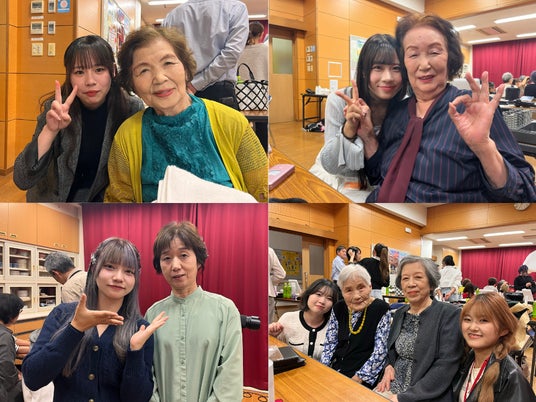 麻生美容専門学校の学生が、10月4日に学校の近くにある春住公民館のイベント「花の茶話会」で、地域の高齢者にメイクアップを行うボランティア活動に参加しました。