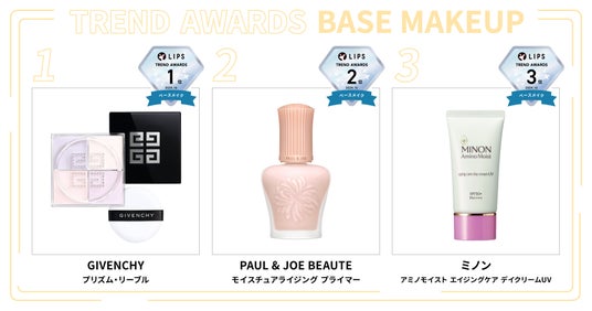 コスメ部門では、ぷっくりとしたツヤ感、印象的な煌めき、儚さを演出するふんわり感といった、ユニークな質感が楽しめるアイテムに注目が集まる。ベースメイク部門では、「GIVENCHY」「PAUL & JOE BEAUTE」の超定番アイテムのリニューアル&新色情報が、SNS上で大きな盛り上がりを見せた。