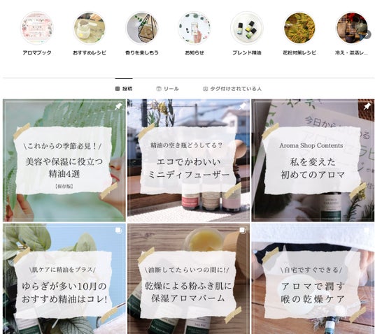 公式instagramアカウントでは「香りのある暮らし」をテーマに精油の楽しみ方やアロマレシピなど初心者からサロンオーナーまで活用できる情報を発信