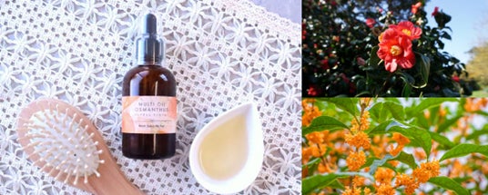100%利島産の希少なツバキオイルをはじめとした3種のキャリアオイルをベースに、昨年まで秋限定精油としてご好評を頂いていたブレンド精油キンモクセイ(キンモクセイ、ホーリーフ、グレープフルーツの精油を配合)の特別ブレンドを加え、秋のリラックスタイムをより潤いあふれる時間に導く、プロユースのナチュラルオイルが誕生しました。