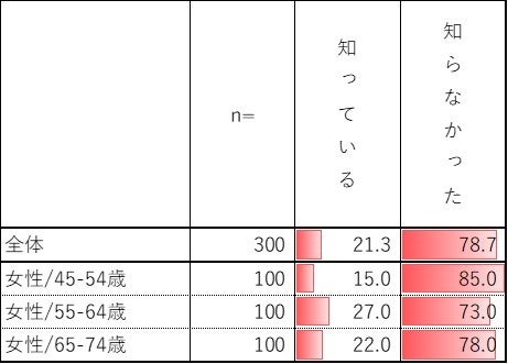 顔の外見の変化は、骨密度の衰えにも原因があることを知っているかと聞いたところ、全体の78.7%もの女性が知らないことが分かりました。