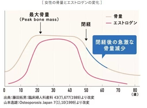 この時期に起こる急激な骨の変化によって、骨粗しょう症につながるとも言われています。ただ骨粗しょう症は自覚しにくいため「沈黙の疾患」と呼ばれており、気が付くと骨が弱くなってしまっていたことが多いので早めの対処が重要となります。