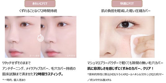 *72時間メイク持続/ 72時間毛穴カバー持続 / 72時間アンチダークニング持続 認証完了