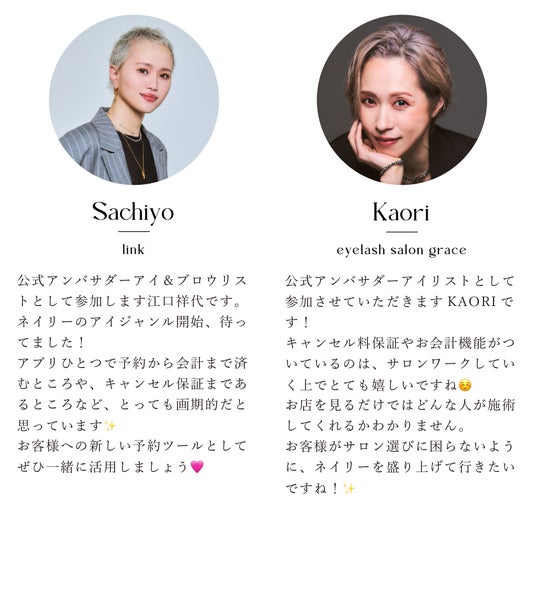 総フォロワー数100万人超え、SNSで人気のアイリスト・ブロウリストがネイリーの公式アンバサダーとして就任!著名アイリスト・ブロウリスト総勢46名がネイリーでの予約受付開始を決定。新間茉生さん、mihoさん、Sayakaさん、斎須麻未さん、ハリウッドブロウリフトのSAKURAさんなど、豪華メンバーからのコメントを紹介します。