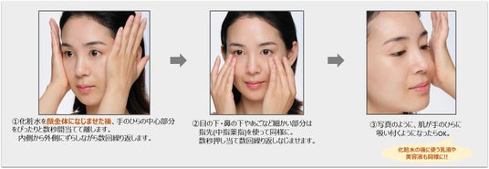 ■ベースメイク前のスキンケアPoint:うるおいを角層に十分に浸透させ、べたつきを残さずもっちり肌に仕上げる