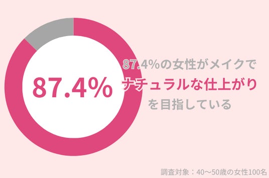 調査の結果、87.4%の女性がナチュラルな仕上がりを目指してメイクをしていることがわかりました。