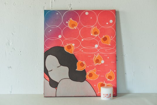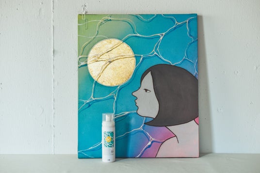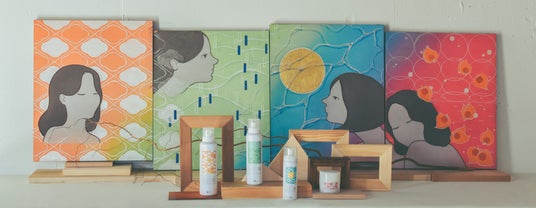 4つのスキンケアアイテムに対して4つの連作で構成された日本画作品は、シリーズとしての統一感を表現しています。