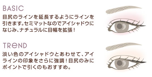 (3) 目元に溶け込むセミマット質感。アイシャドウにも自然になじみ、瞳の印象を際立たせます。