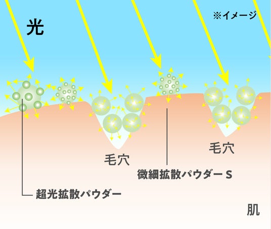 特性の異なる2種の光パウダー※4~5を配合し肌表面の凹凸や毛穴など” 影” による肌悩みを光で解決。