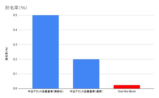 今治タオルの基準値に比べ、1/25の毛羽落ち率です。これは耐久性があると共に肌トラブルの要因を減少させます。