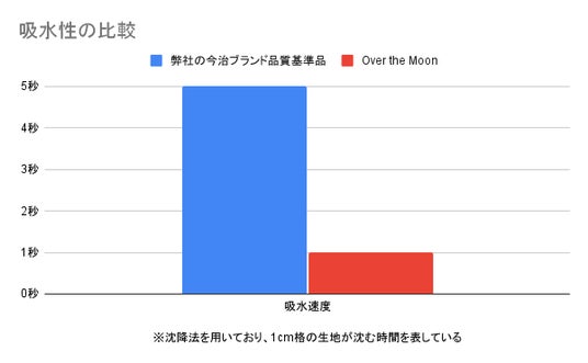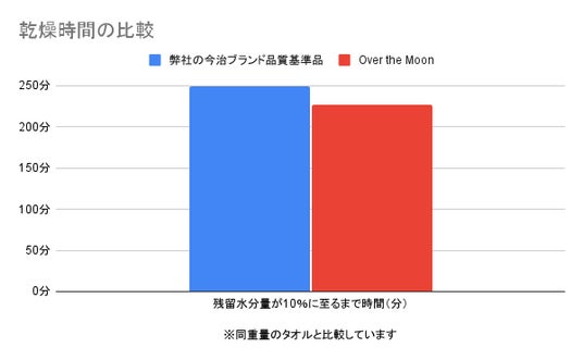 今治タオルの基準値と比べ、約5倍の吸水性を持ちながら、従来品よりも、約10%乾きやすいタオルです。