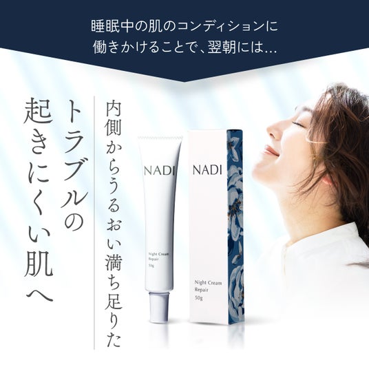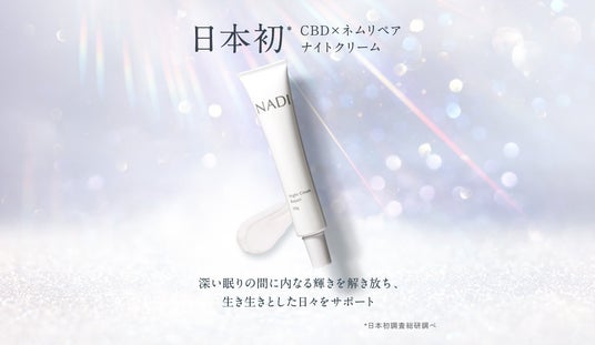 「内側から輝く、真の美しさへ。」をコンセプトとしたウェルビーイングなスキンケアブランド「NADI」は、新商品「NADIナイトクリーム」を発売いたしました。この商品は、睡眠中の肌ケアに特化した日本初*の独自の配合成分「CBD×ネムリペア」を採用し、肌を健やかに整え、内側から輝く美しさを引き出します。