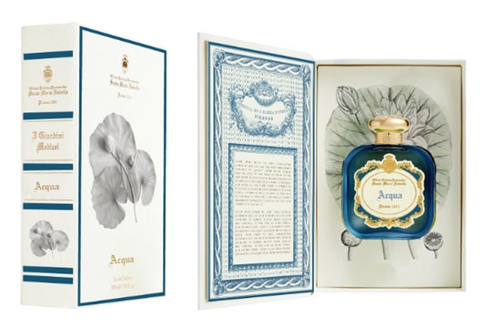 ブランド発祥の地であるフィレンツェのルネサンス期に栄華を極めたメディチ家の庭園に由来するジャルディーニ メディチェイ コレクション。フィレンツェの悠久の歴史と文化を香りで描き出すこのコレクションに、「アクア」と「クエルチア」という2つの香りが新たに誕生します。大理石の噴水を思わせるブルーカラーの「アクア」は洋ナシとフリージアの瑞々しいマリンノートが心地よく、荘厳な樹木を表現するグリーンカラーの「クエルチア」はオークをベースにしたウッディノートが特徴です。4月に発売開始されたビッザリア、アイリス、マグノリア、ジェルソミーノの4種の華やかなノートに新たな深みが加わったサンタ・マリア・ノヴェッラの香りの世界をご堪能ください。