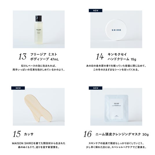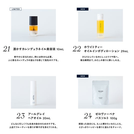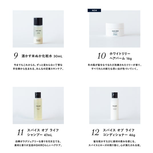 このアドベントカレンダーには、SHIROが未来のために踏み出した一歩への想いを、24個のときめきとともに詰め込んでいます。新しくなっても根っこは変わらない“SHIROらしさ”で溢れるアイテムを使って、“新しい自分”と出会うきっかけとなっていただけたら嬉しいです。