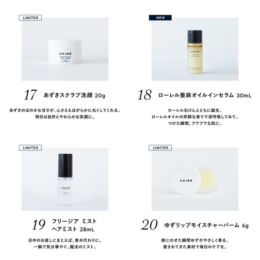24個のアイテムの中には、このアドベントカレンダーで初めて登場する製品や、過去に限定で登場してきた製品、そして、たくさんの方に愛していただいている定番製品などを揃えています。大切な人と過ごす日や、学校や仕事での日常、1年頑張った自分へのご褒美時間にも。ホリデーシーズンのどんなシーンにもSHIROのアドベントカレンダーが彩りを添えて、たくさんの笑顔が生まれることを願っています。