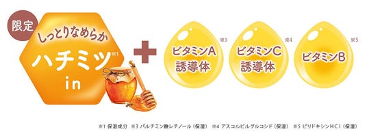 うるおいチャージする3種の保湿ビタミンに加え、限定品はハチミツ※1を配合。