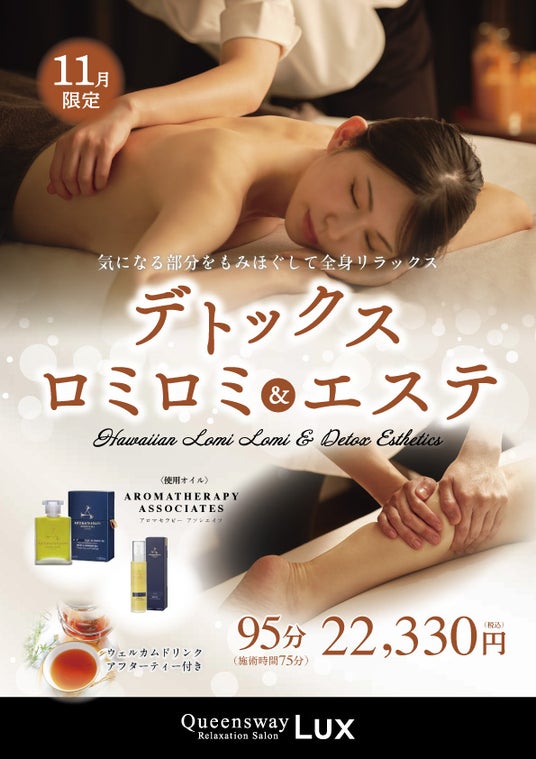 Queenswayのハイクラスサロンという位置づけであるQueenswayLUXが「デトックス ロミロミ&エステ」と題しましてオススメのコースをご提供いたします。
