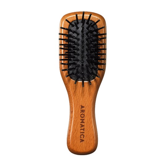 ウッドスカルプブラシ スモール(S)(ヘアー用ブラシ)耐久性に優れたヨーロッパ産ピーチウッド(ブナの木)を使用。ブラシ先端のボールチップとふわっとしたクッションヘッドがストレスでコリ固まった頭皮ともつれた髪をやさしくほぐします。持ち運びやすいミニサイズでポーチに入れてどこでもブラッシングできます。