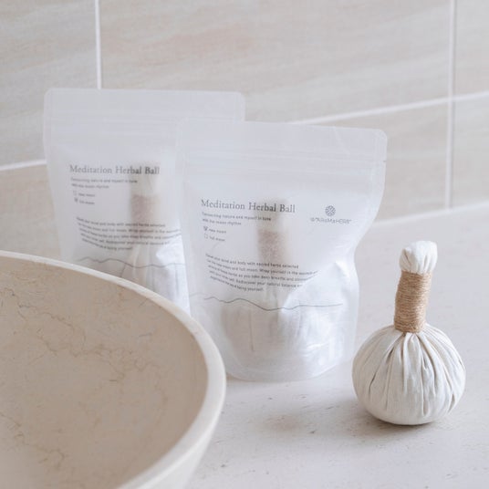 メディテーションハーブボールは、新月と満月をテーマに、国内外の植物と鉱物をブレンドした神聖なハーブボールです。忙しい毎日の中で、自分に意識を向ける時間が取りづらいという方に、自分と対話し、自分と向き合う習慣を大切にしてほしいという想いを込めて作りました。ハーブボールの香りと温かさに包まれて、深呼吸とともに、自分の内側へと深く繋がっていきます。メディテーションハーブボールは、本当の自分を生きる喜びを取り戻し、豊かで幸せな人生を送りたいと願うあなたをサポートします。