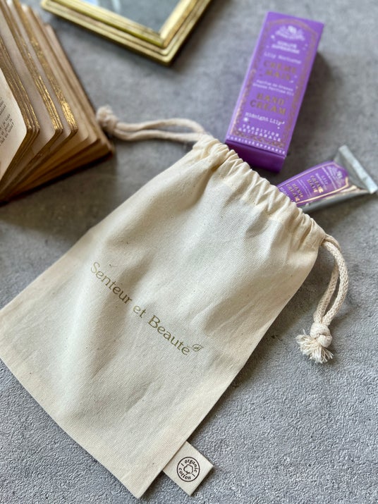 サスティナブルなギフトラッピングとしても嬉しい、オーガニックコットン100%のポーチ。