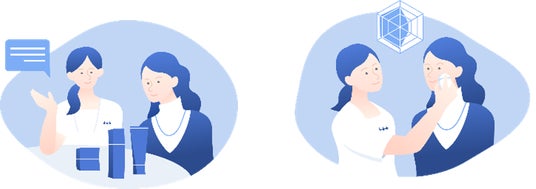 お客さまのご希望にあわせ、製品や使用方法のご紹介、肌の個性を解き明かす「ポーラの肌分析」体験を同時に