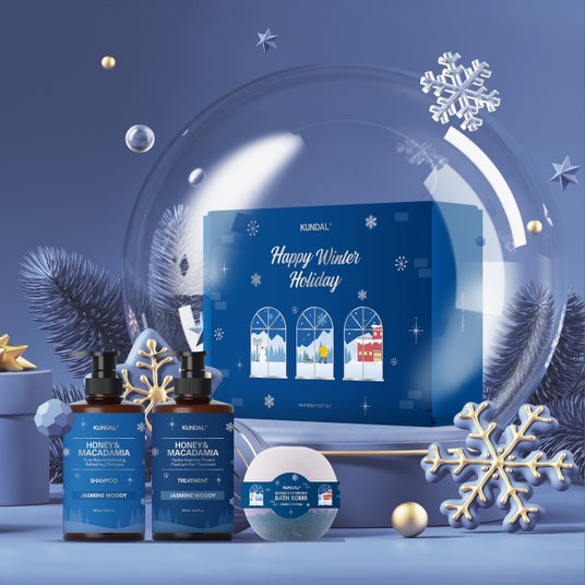 充実したヘアケアアイテムを展開するKUNDAL。オリジナルの大人可愛いギフトボックスに入ったプレミアムホリデーエディションには、冬にピッタリなジャスミンウッディの香りとホワイトムスクの香りが楽しめるバスケアアイテムが3点も!
