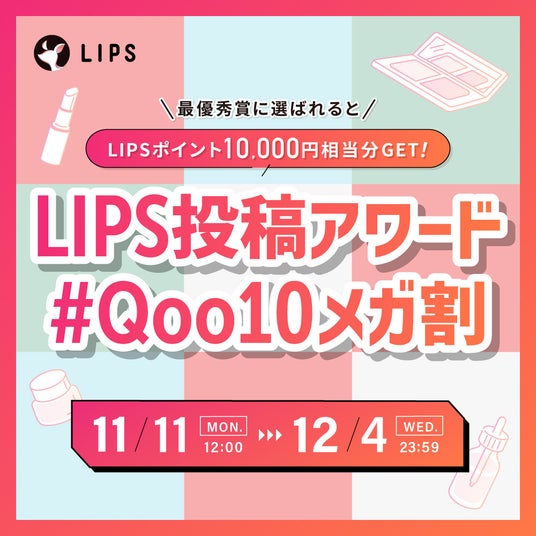 Qoo10「メガ割」のコラボ企画をより多くの方に楽しんでいただけるよう、豪華な景品を用意した投稿コンテスト「LIPS投稿アワード」を開催しています。