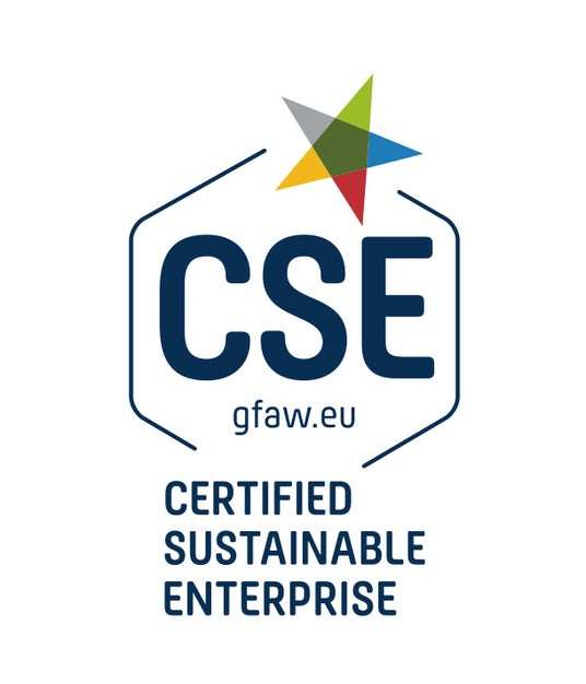 サステナビリティ分野のパイオニア的存在、ドイツのCSE発行“品質保証書”つき世界で毎年10社程しか取得していない、サステナビリティ・倫理的、生態的、社会的、経済的な持続可能性の基準や指標を審査した上で企業に授与されている認証。