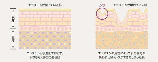 赤ちゃんの肌がふっくらもちもちしている要因のひとつはエラスチン。エラスチンは肌のハリや弾力の要。そして、うるおいを作り出すコラーゲン・ヒアルロン酸を結びつけている重要な成分です。
