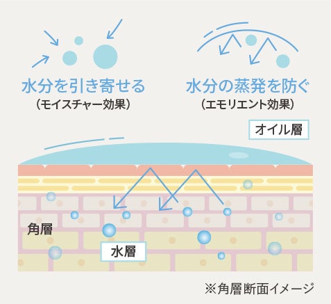 油分を補うオイル層と潤いを与える美容液層。界面活性剤フリーのため、肌に塗布した瞬間、オイルと美容液が瞬時に分かれそれぞれの役割を果たします。オイル層は肌を柔らかくし、美容液層はエラスチン*⁶やビーガンレチノール*⁵を含む美容成分が角質層の間を循環しやすくし、しっかり保湿を持続させます。