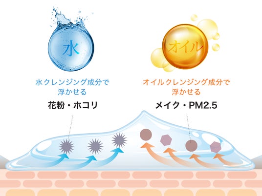 素の一つです。この構造により、メイク汚れや皮脂などの油性汚れから、汗やほこりといっ