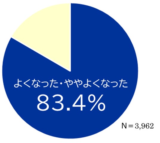 今回ドネーションにご参加の上アンケートに回答いただいた方のうち、83.4%の方が『DHC オリーブバージンオイル』を使用して肌のコンディションがよくなったと回答しました。加えて、その内76.2%が仕事に対するモチベーションが何らかの形で上がったと回答しています。