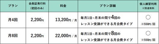 120名限定でオープニングキャンペーンがスタートしています。料金はそれぞれ、月4回プランは11,000円(先着100名)、月8回プランは19,800円(先着20名)で初月だけでなく永年同じ月会費でご案内させていただきます。いずれも会員登録料は無料です。