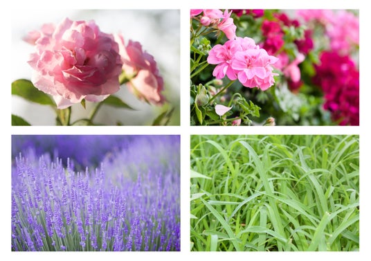 天然精油:ダマスクバラ、ラベンダー、パルマローザ、ゼラニウム