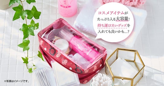 ポーチは、コスメアイテムをたっぷり入れられる大きめサイズで、中身が見やすい片面クリアタイプ。完全オリジナルデザインです。好きなグッズを入れて一緒にお出掛けするのもおススメです。
