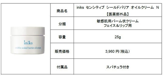 医薬部外品として発売する「iniks センシティブ シールドバリア オイルクリーム N」は、約90%がオイル・ワックス成分ですが、さらっと軽やかでべたつかないテクスチャーの敏感肌用バーム状クリームです。